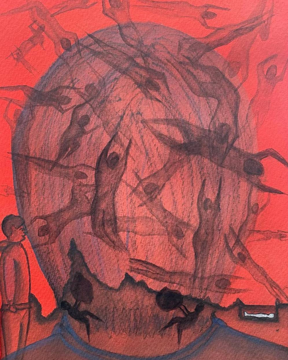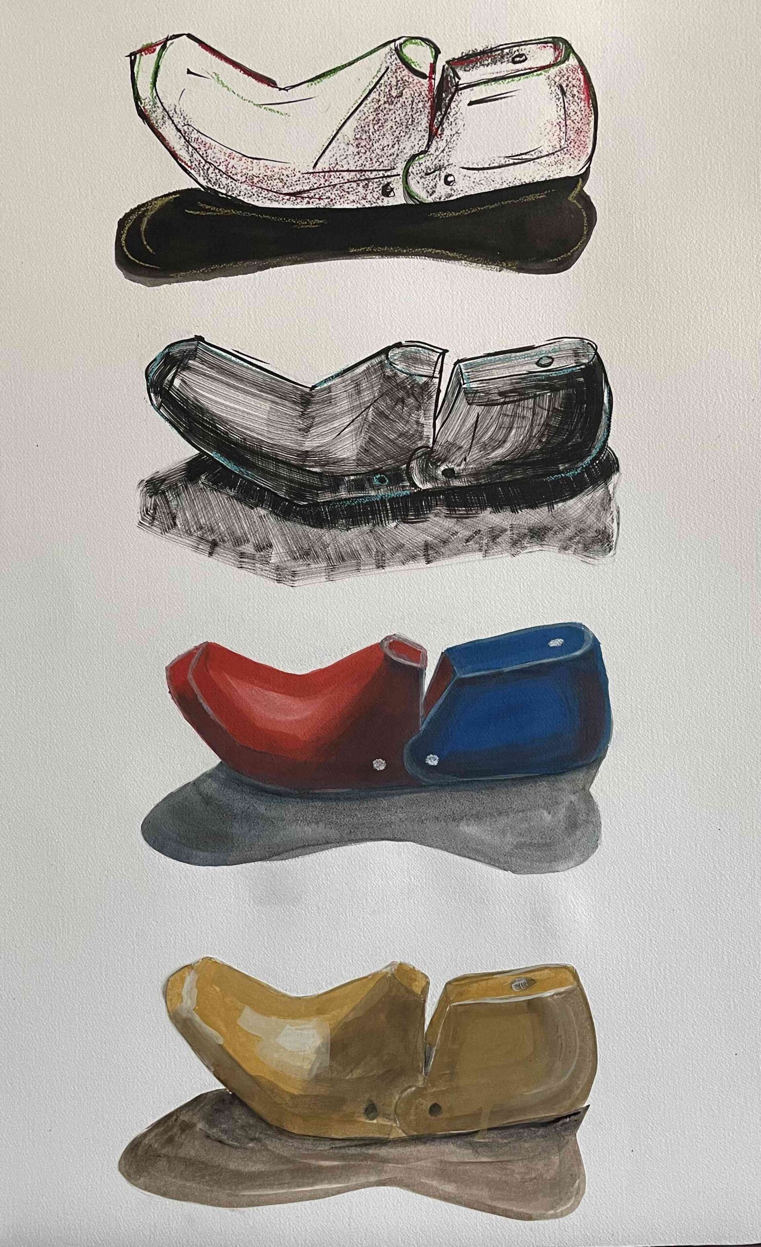Gouache, soft pastels, ink on paper