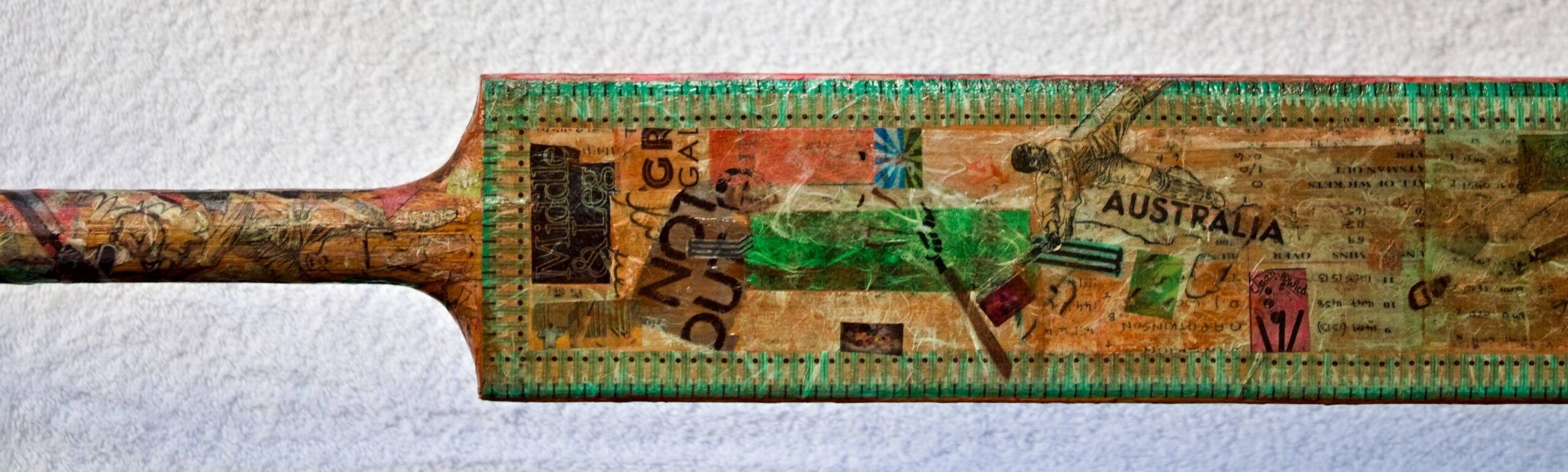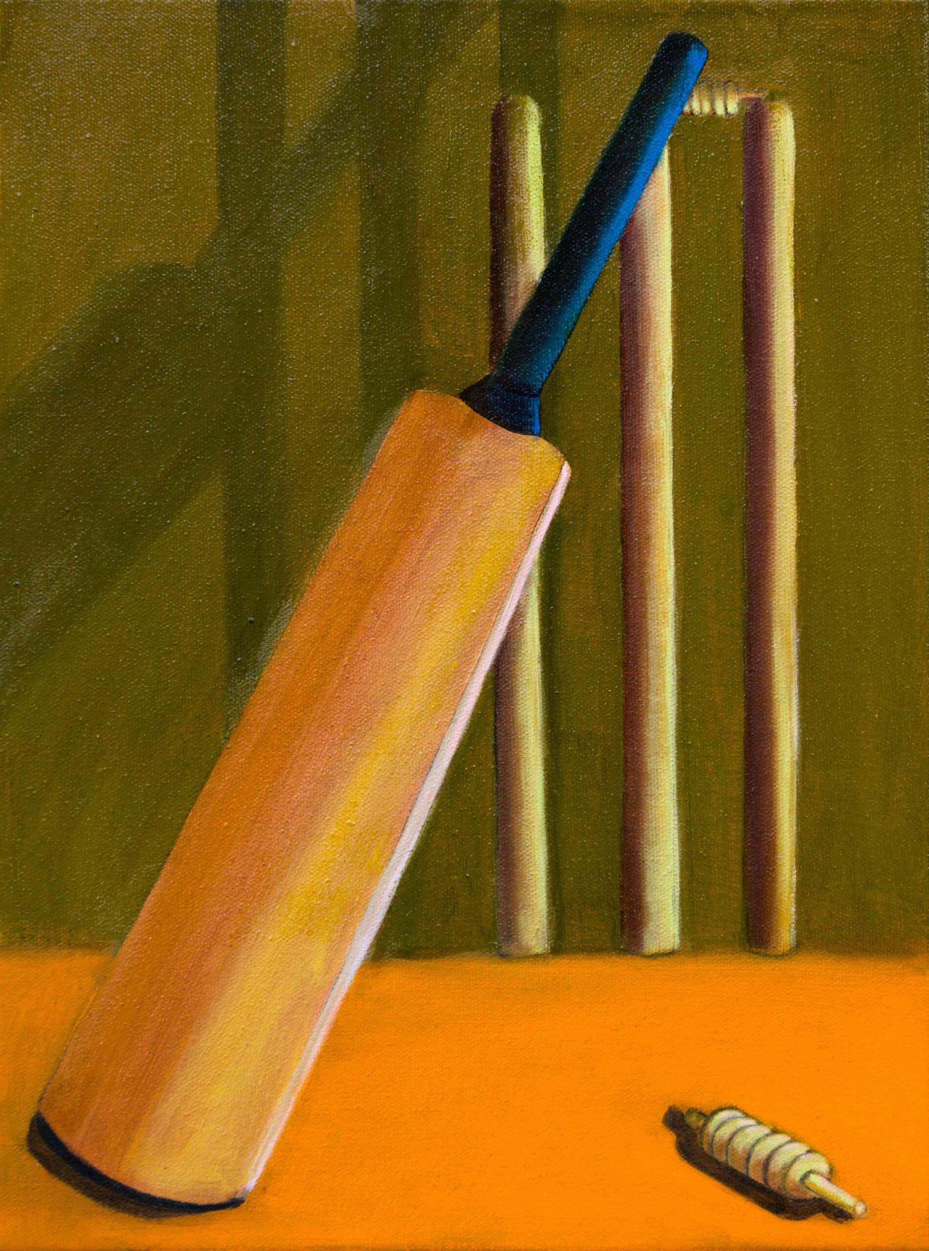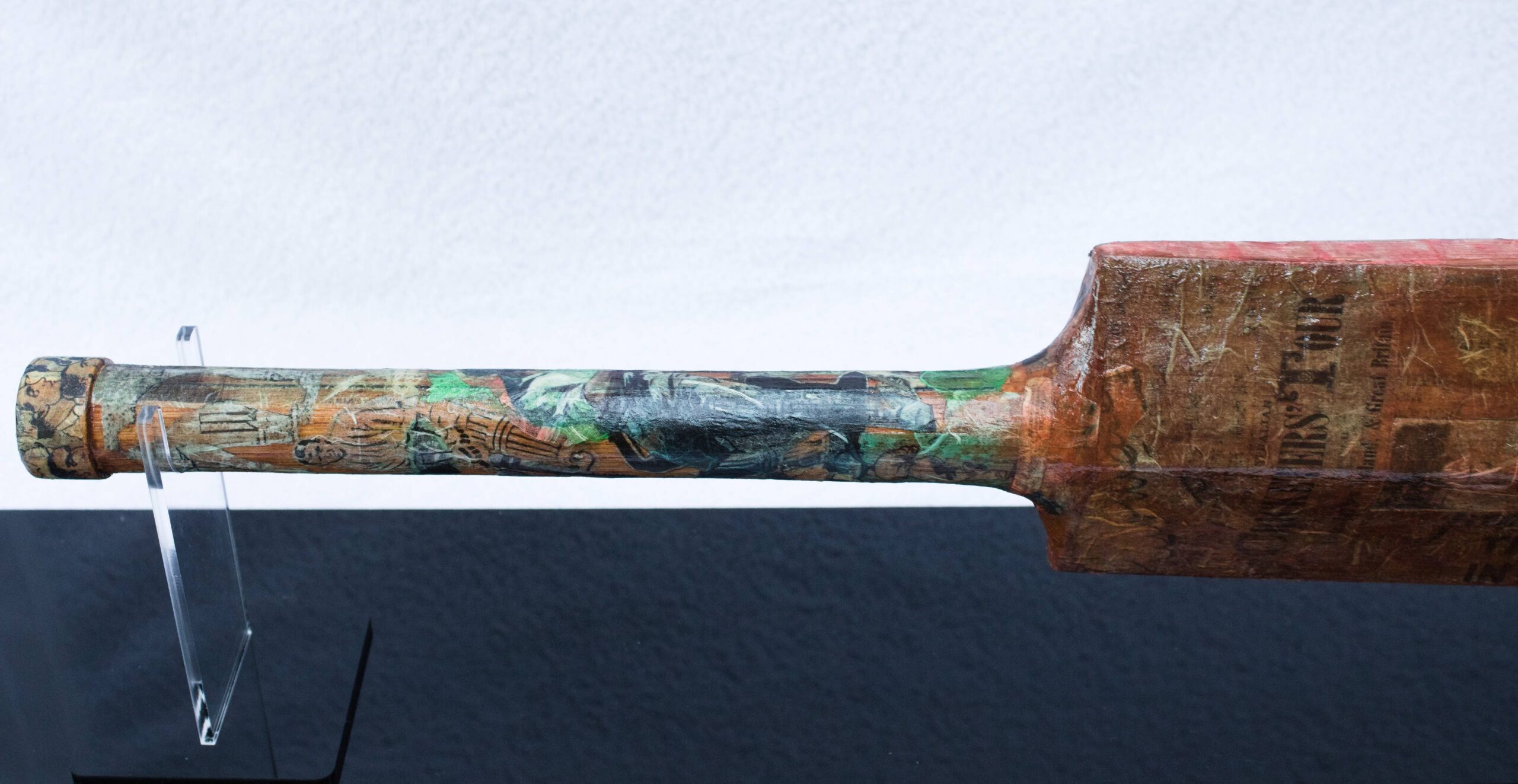 Acrylic and protective varnish on Cricket bat with acrylic case