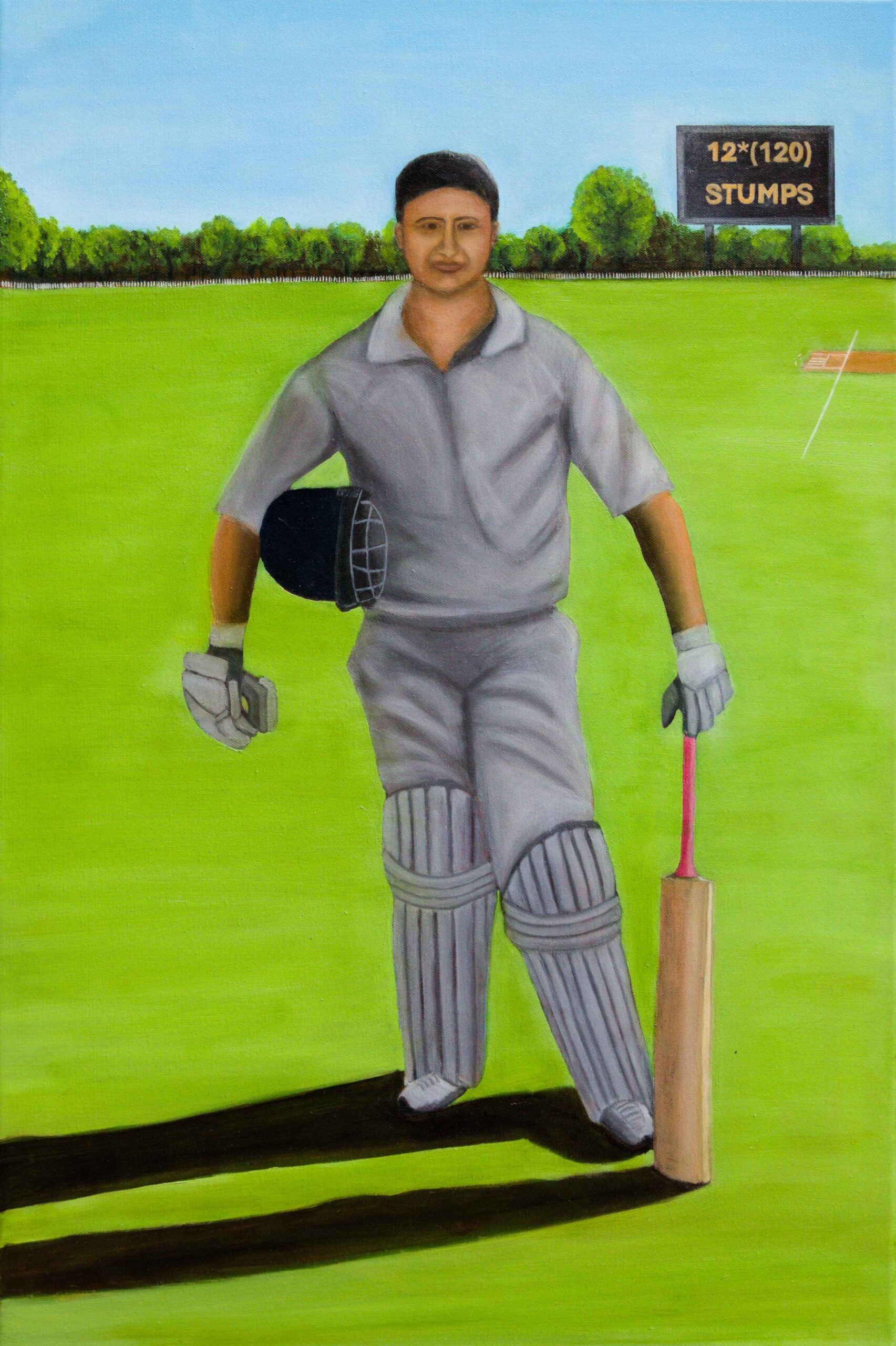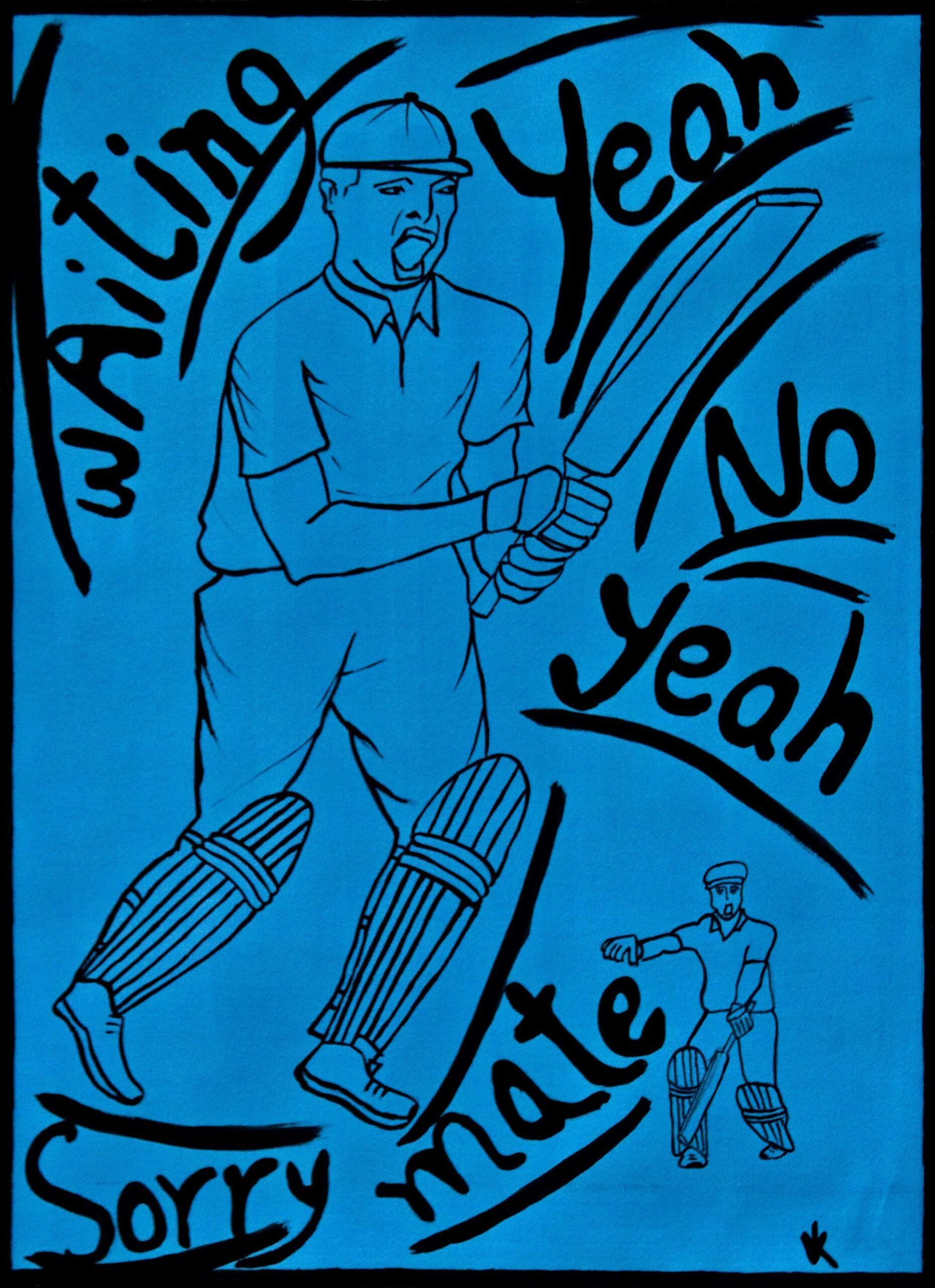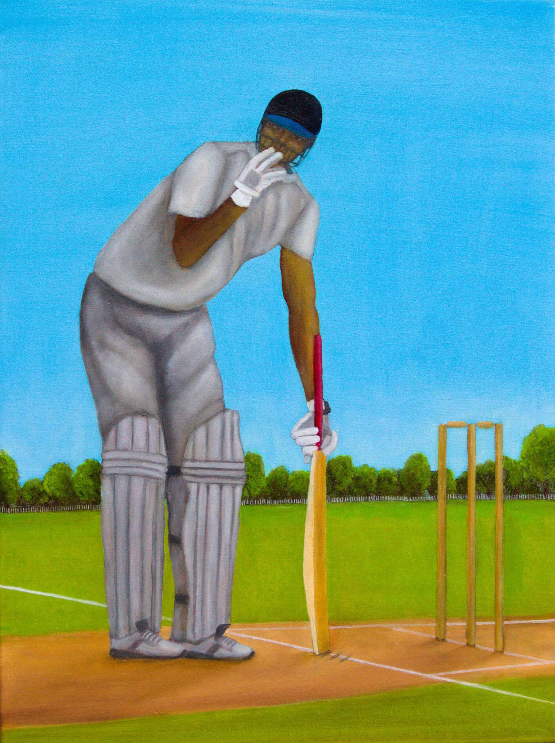 Acrylic and protective varnish on Cricket bat with acrylic case