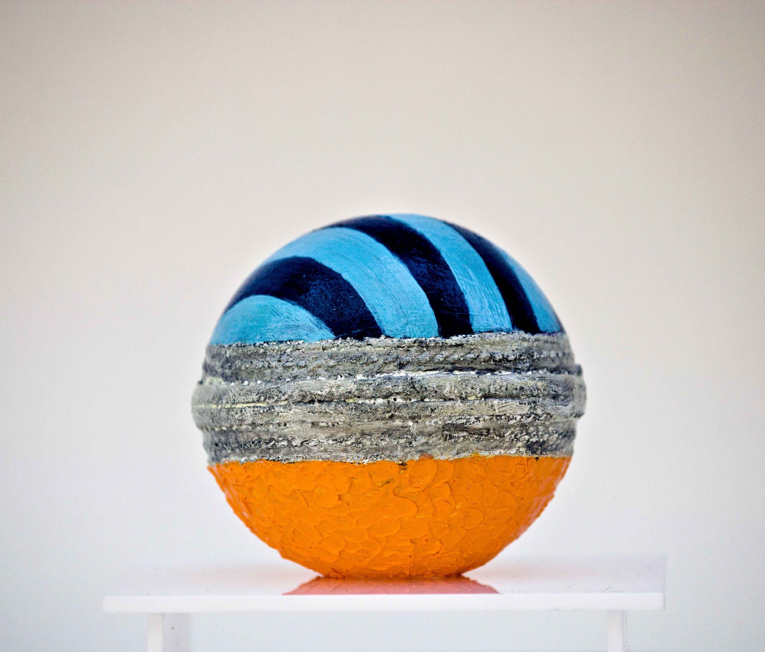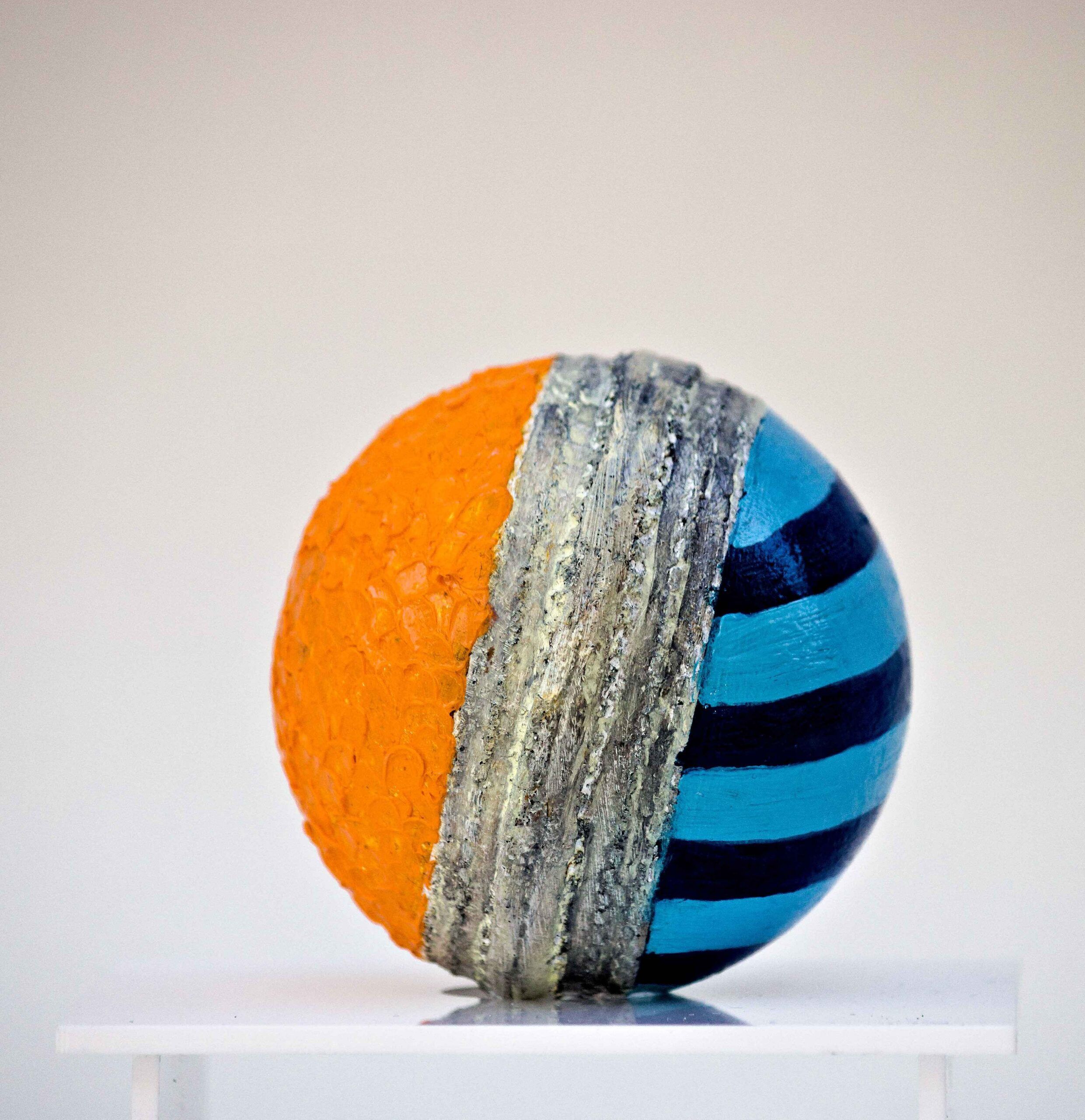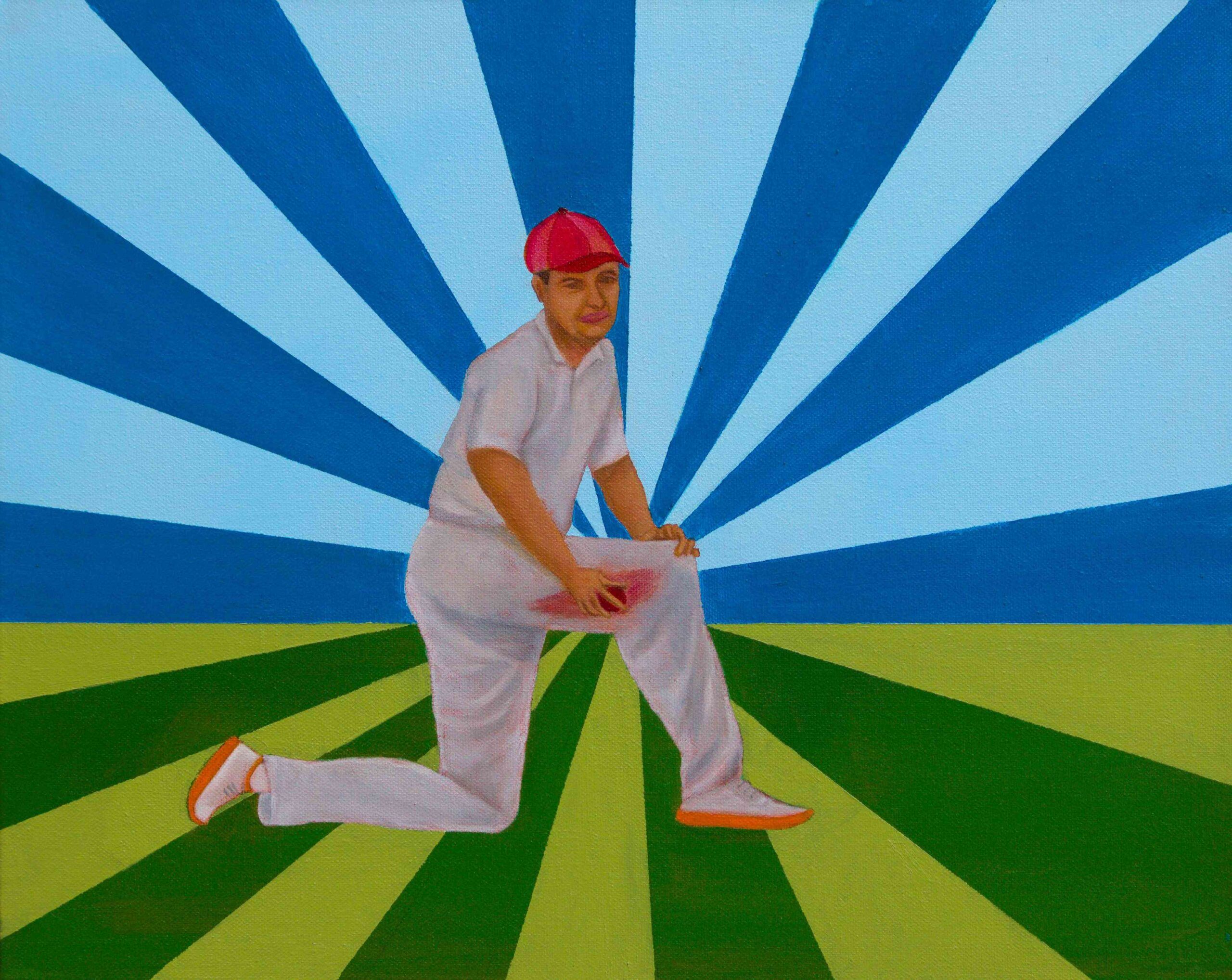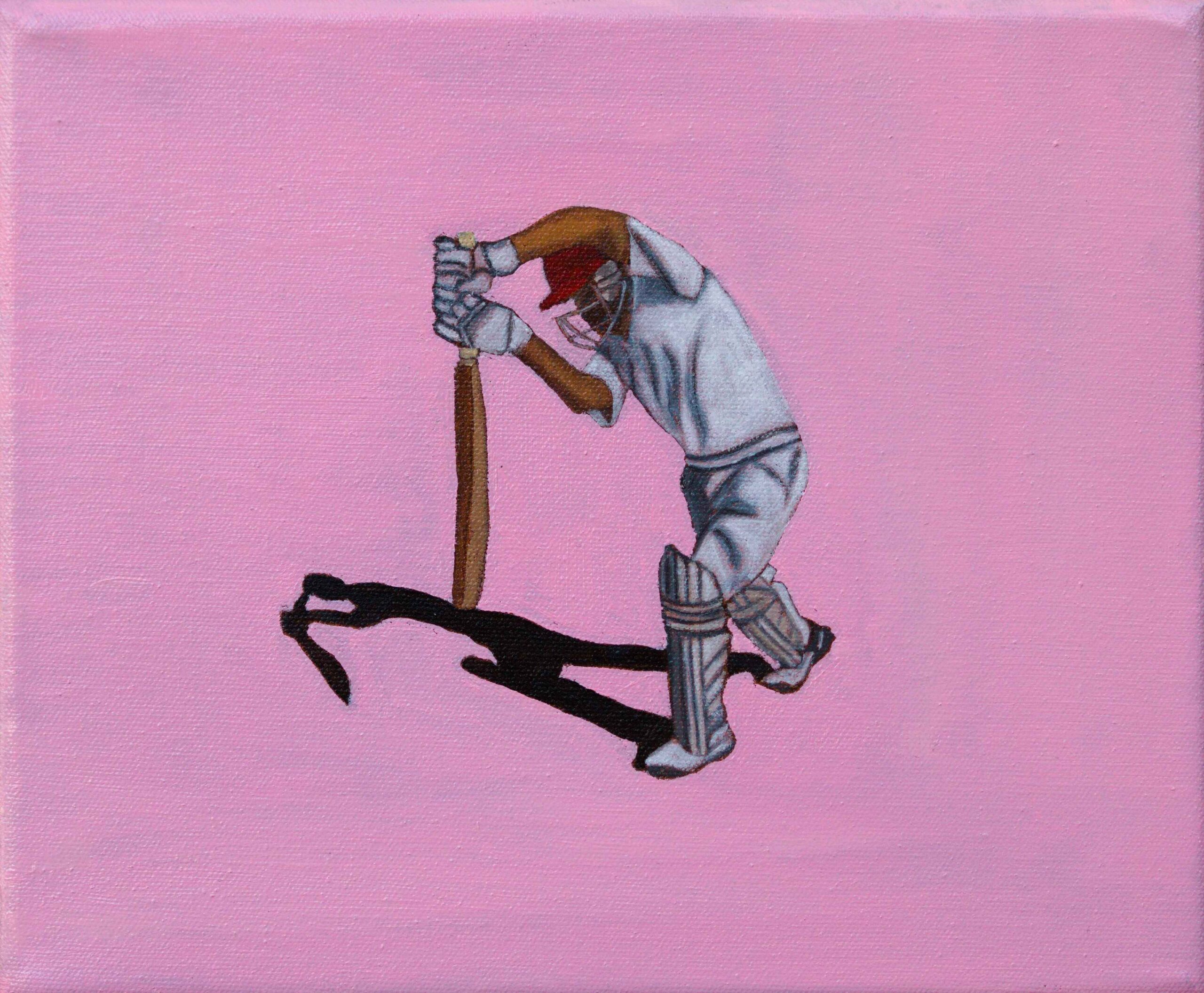 Oil paint and protective varnish on Cricket ball with acrylic case