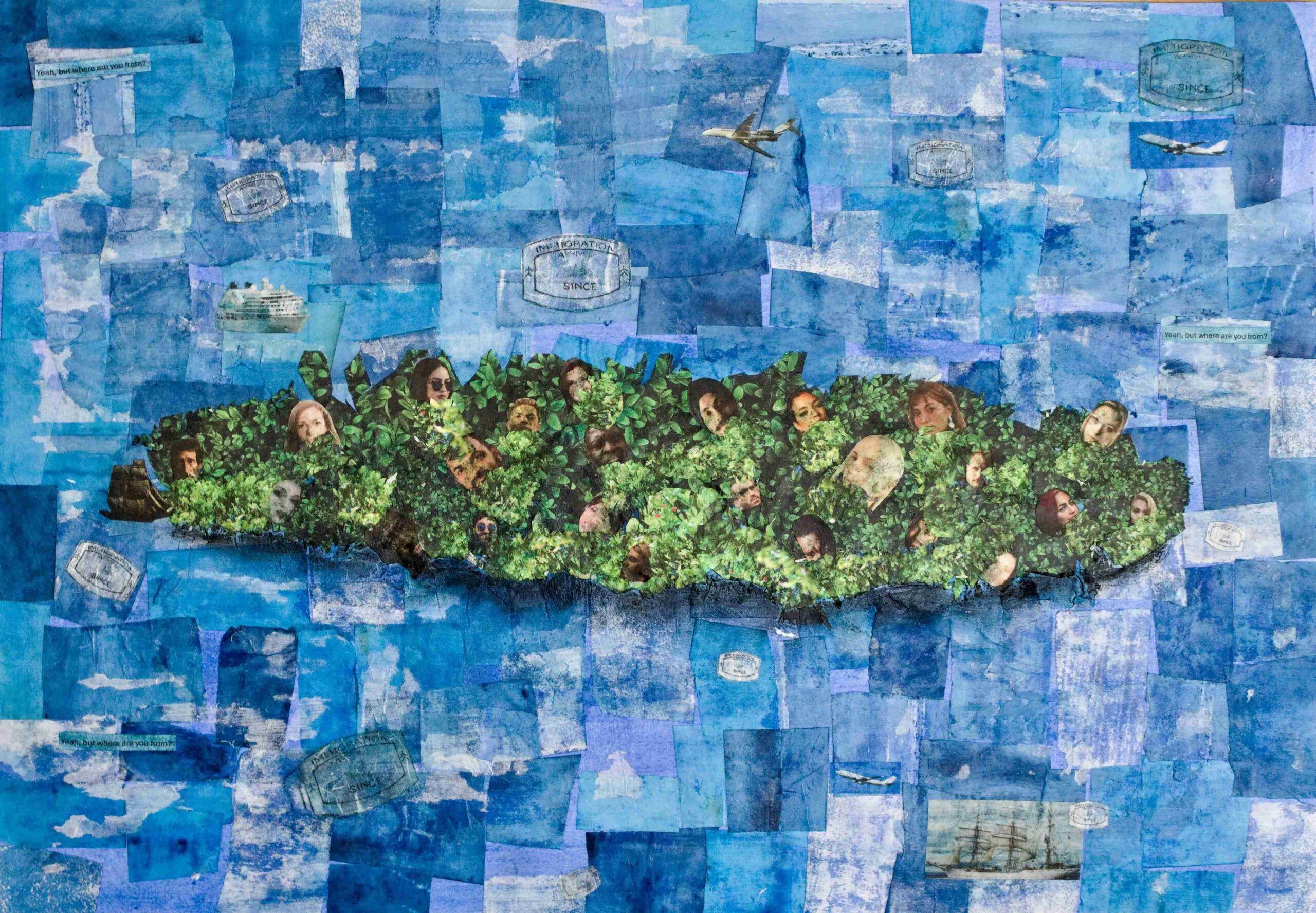 Gouache and collaged lino prints on paper